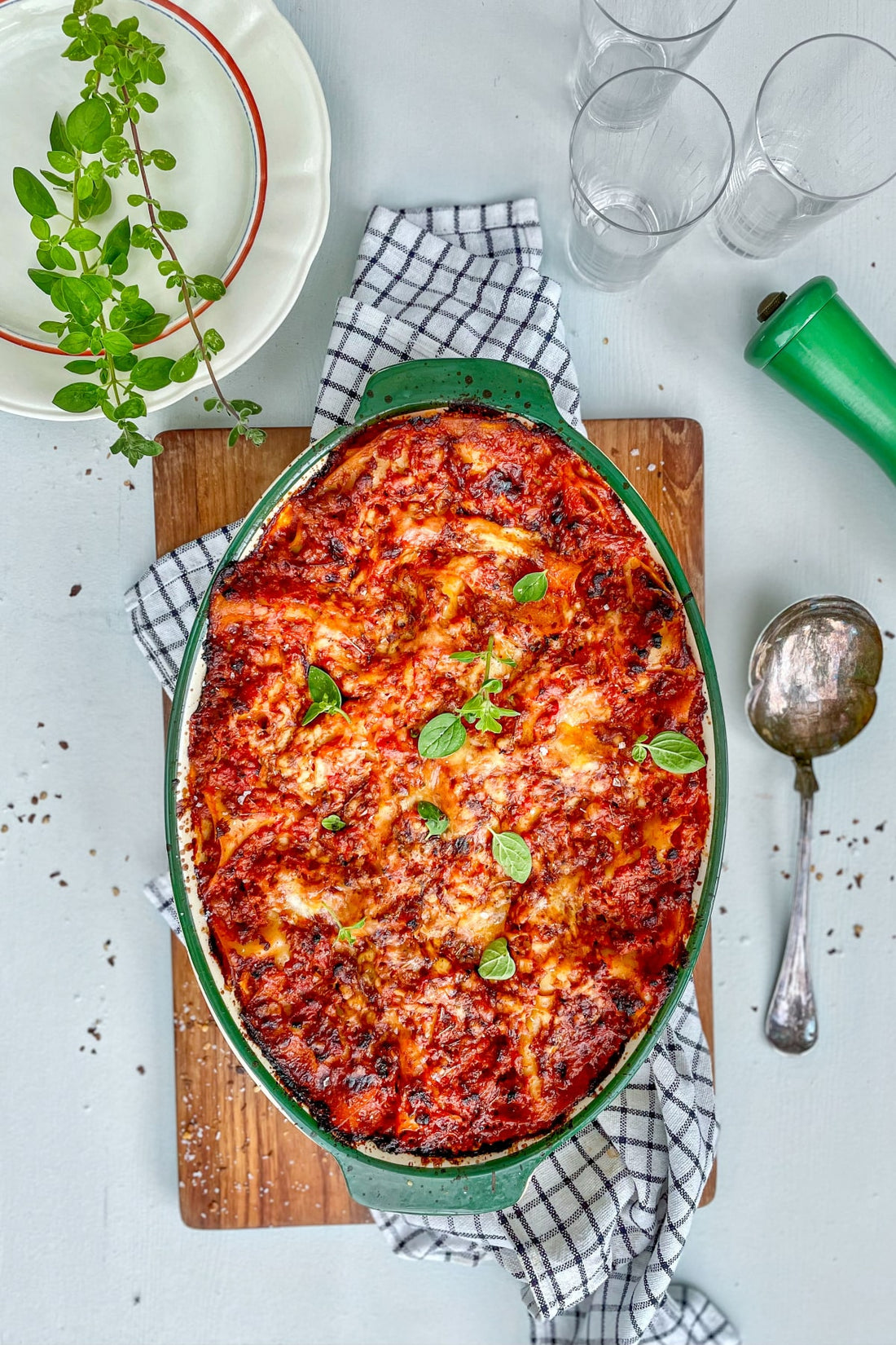 En snabblagad ”allt i ett lasagne”. Fungerar fint till både till vardags och fest. Variera med lagrad ost, färska lasagneplattor och en skvätt rödvin i såsen för extra festlig lasagne.